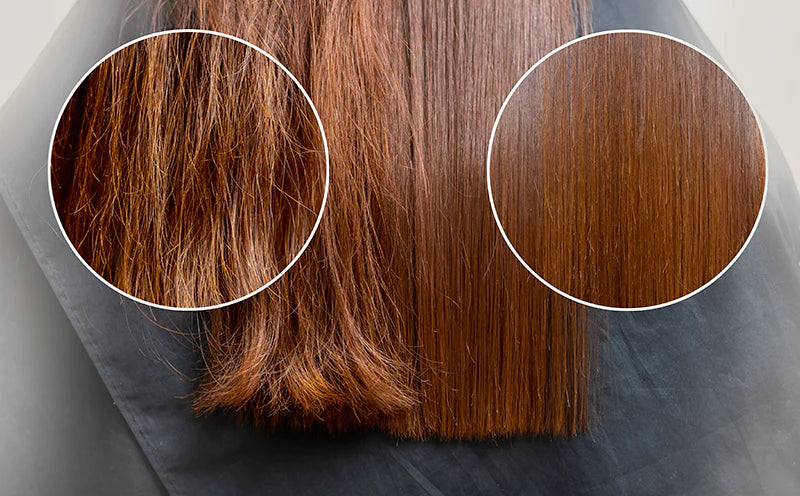Le traitement kératine pénètre profondément dans la fibre capillaire pour la réparer de l'intérieur, offrant ainsi une réparation durable et efficace.