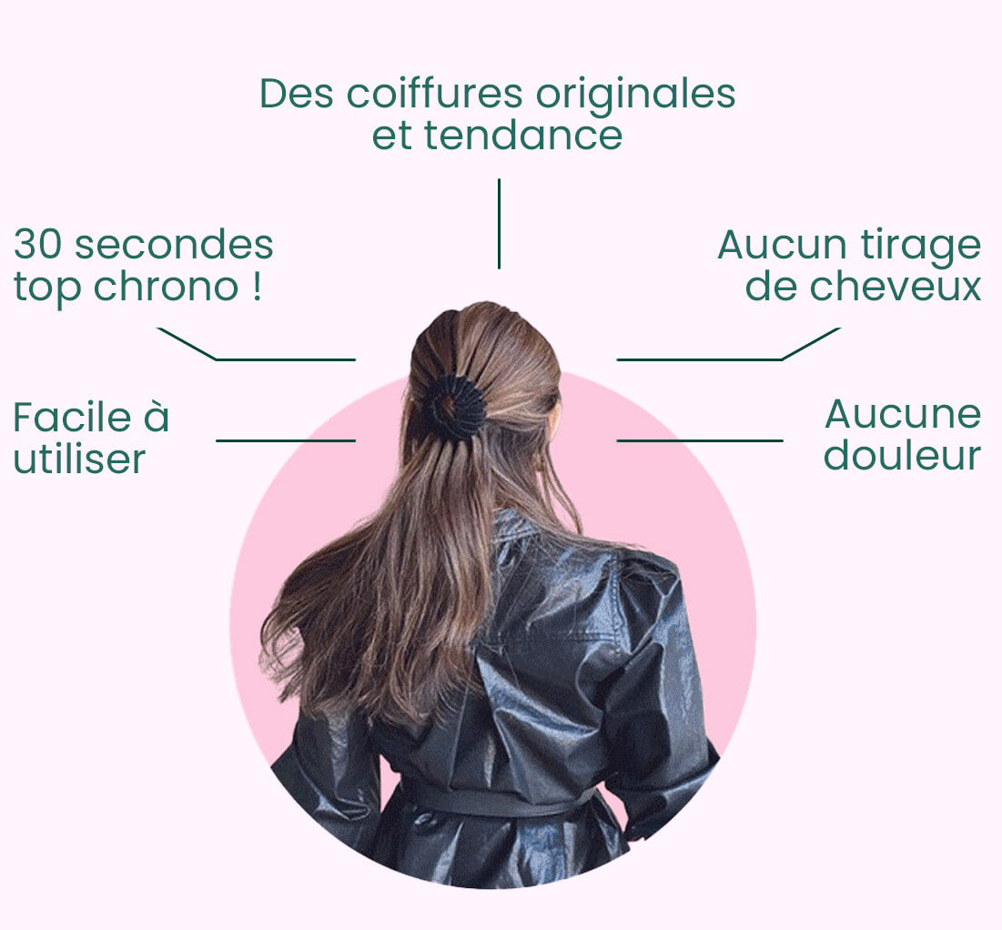 Avec le Clip Magique de PopBrush, réalisez de nombreuses coiffures, de l'élégant chignon au piquant mohawk, en moins de 30 secondes.