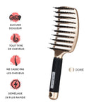 - Démêle en douceur sans douleur grâce à ses poils de sanglier respectueux du cuir chevelu.